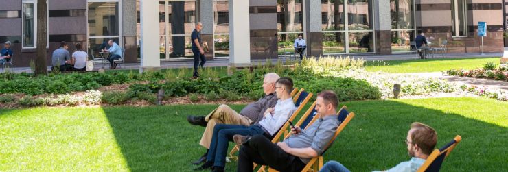 Situated on the largest green space in downtown Minneapolis, Turf Club offers a seven-hole putting green, lawn games, a covered pavilion, and a large outdoor gathering space. Spanning 2.5 acres, our outdoor oasis offers tenant-only seating for work or lunch, reflection, or private events.